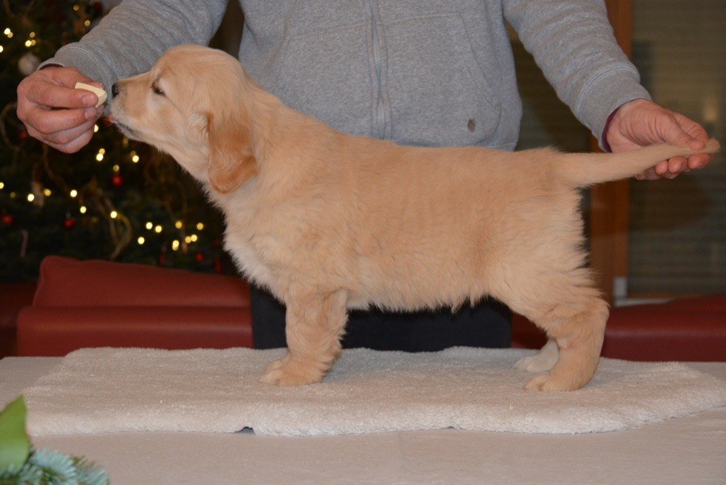 Coudes : 0/0 GR-PRA1 : Sain ( +/+ ) GR-PRA2 : Sain ( +/+ ) Gonio Dysplasie : Sain Hanches : A/A Ichtyose : sain ( +/+ ) Prcd : Sain Tares oculaires ( Décembre 2022 ) : Sain dentition : correcte et complète hauteur au garrot : 61 cms |